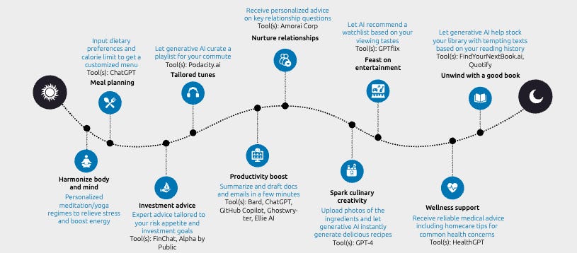 The article sketches a potential map of how GenAI is spreading into the rhythms of daily life. From this map, there are countless avenues of reflection. Let’s try to explore some implications.